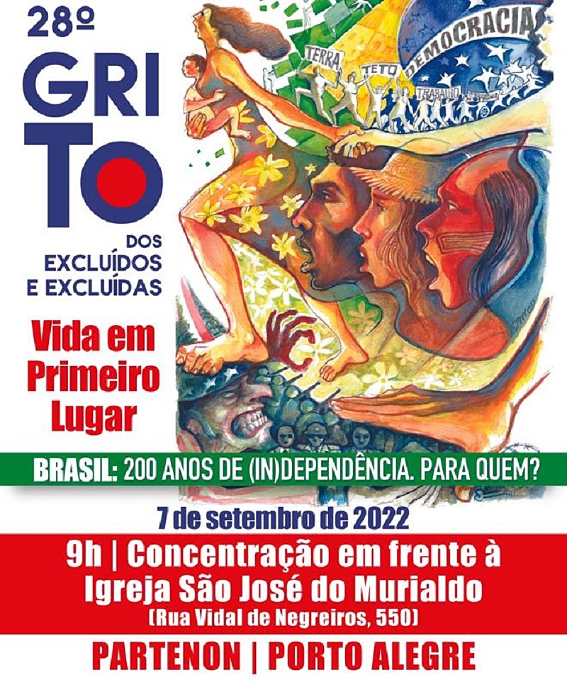 No dia 7 de setembro de 2022, o Grito dos Excluídos e das Excluídas vai novamente às ruas do Brasil para perguntar: “Independência para quem?”. Em Porto Alegre, uma marcha está prevista para iniciar às 9h, com concentração na frente da Igreja São José do Murialdo, localizada na rua Vidal de Negreiros, 550, no bairro Partenon.