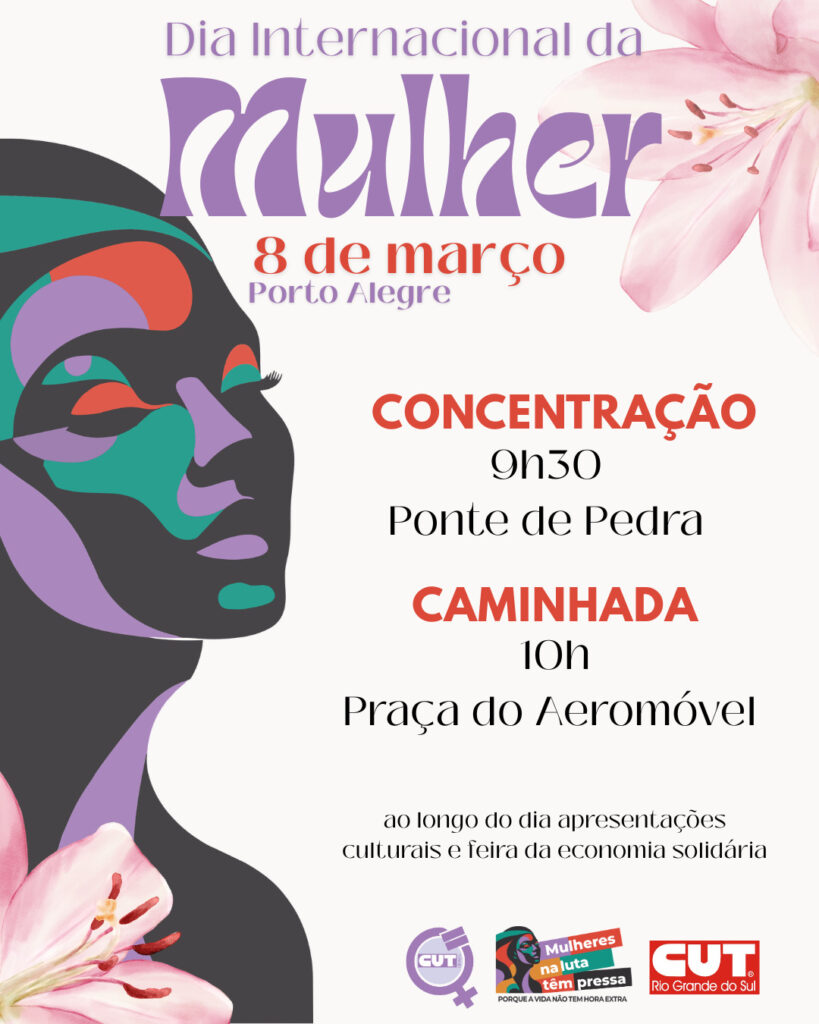 Neste Dia Internacional da Mulher, a CUT-RS chama todas e todos para fortalecer a mobilização por direitos, igualdade e dignidade.