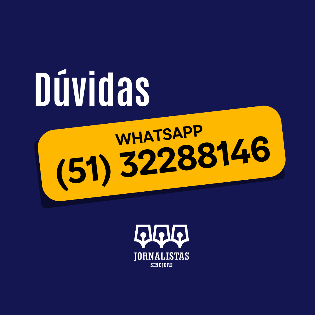 E, PARA FINALIZAR, DEIXAMOS AQUI UM CONVITE: SINDICALIZE-SE! É fácil, é on-line (CLIQUE AQUI) e te fortalece! Contribuições voluntárias também são bem-vindas para a manutenção desta entidade. Os pagamentos, em forma de doação, podem ser feitos com depósito bancário, na conta corrente do SindJoRS (CNPJ – 92.955.202/0001-05), e também pelo pagamento eletrônico PIX ou no site da entidade: